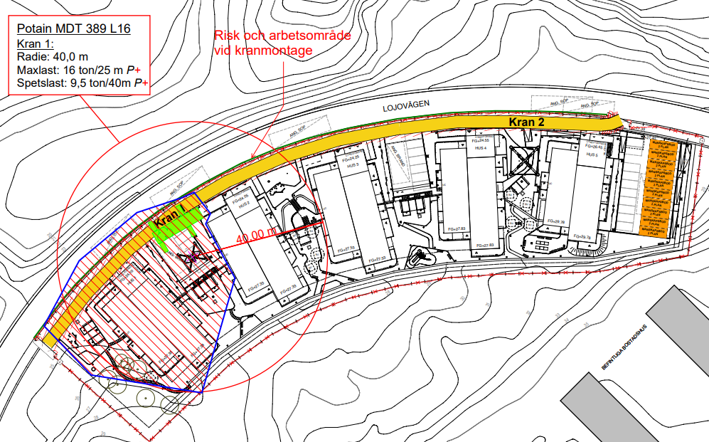 Riskområdet för demontage av kran 1 enligt bifogad beskrivning.